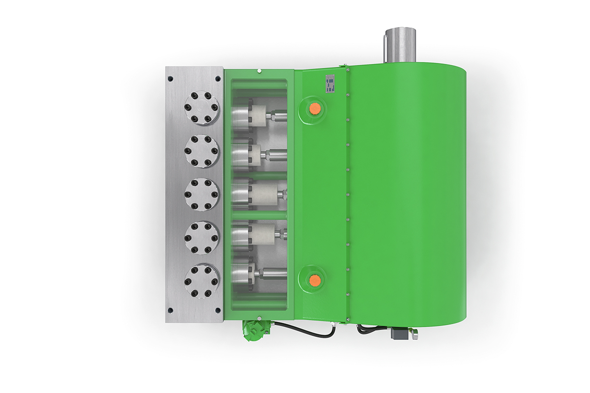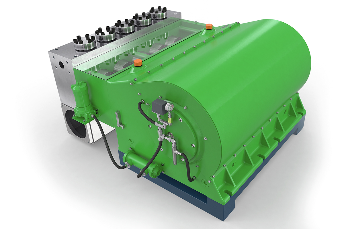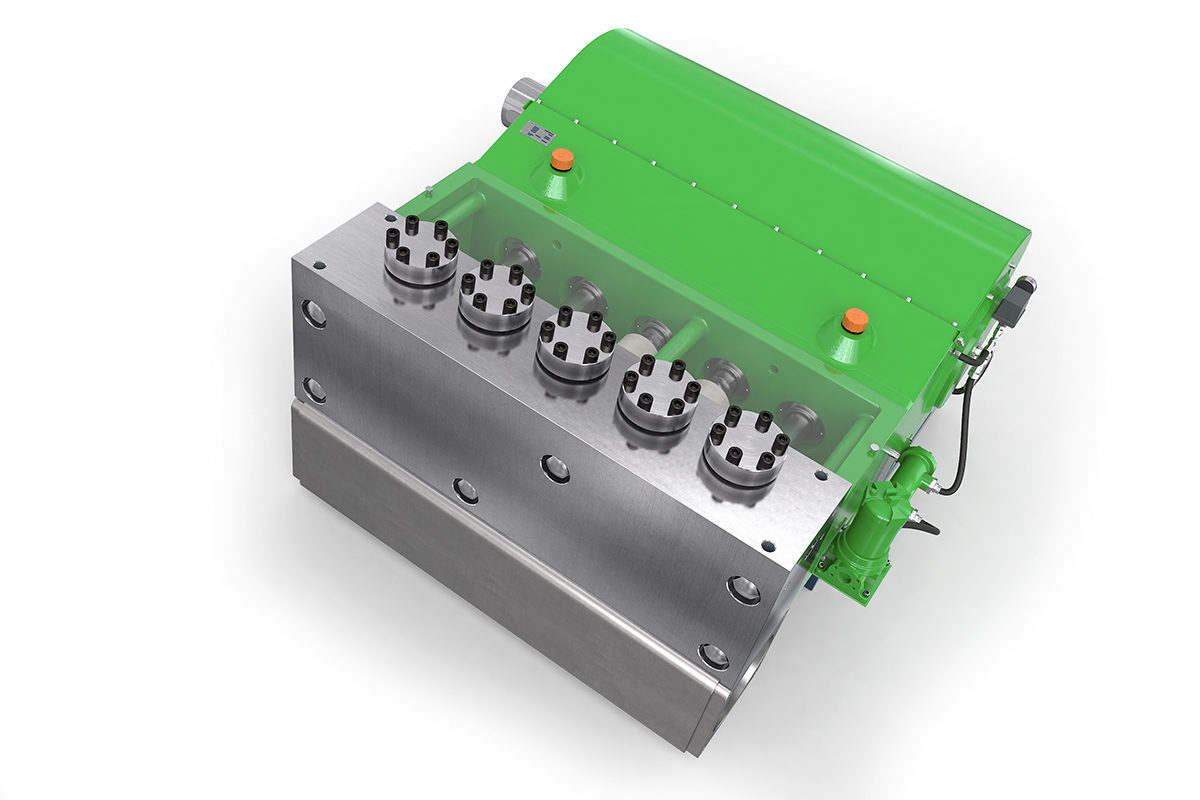 K120000-5G高壓泵的輸入功率為1200 kW,是一款功能強(qiáng)大的泵。 作為五缸泵,它在許多應(yīng)用中無需入口增壓泵。 其特殊的五缸設(shè)計(jì)使我們?cè)诒弥挟a(chǎn)生實(shí)現(xiàn)大流量傳輸而無氣穴現(xiàn)象。 該泵用于液壓和鋼鐵廠,以及石油和天然氣工業(yè)的大型系統(tǒng)。 帶有外部油壓潤滑和油冷卻器的變速箱可確保高壓泵安全,連續(xù)地運(yùn)行。