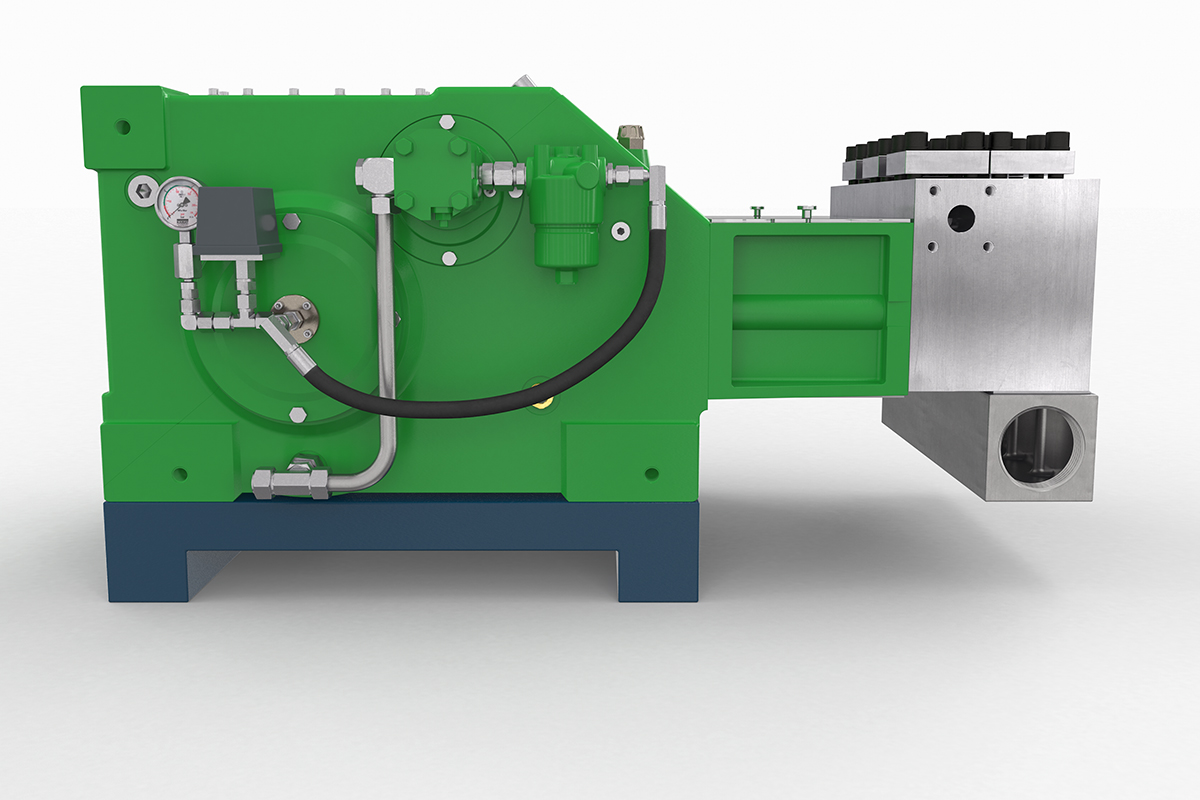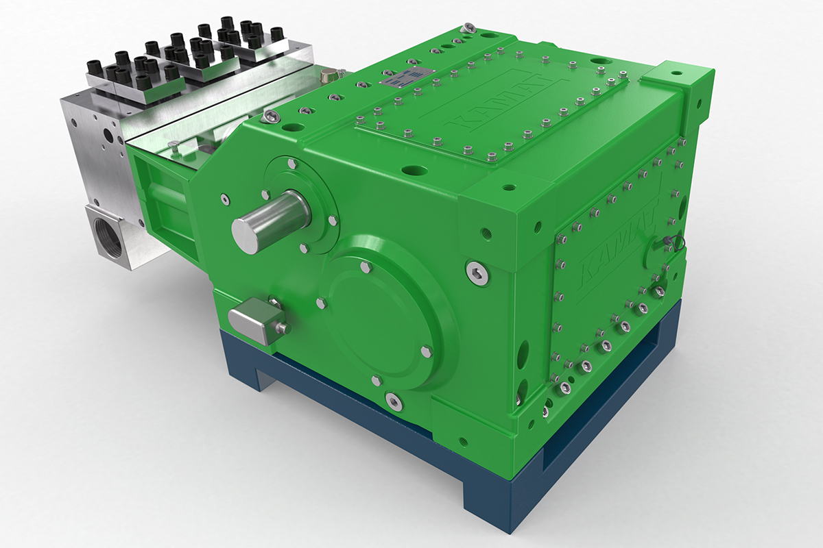 K35000高壓泵的驅動功率為350 kW,非常適合噴射和液壓應用。 例如,它經常與大型移動式噴射系統一起使用,已在化工行業服務多年,并在采礦行業滿足流量從400至600 l升/ 分鐘的需求。 在這種情況下,帶有強制潤滑齒輪和油冷卻器的K35000可以滿足24/7全天候運行的要求。 K35000高壓泵采用經典的KAMAT模塊化組件系統構建,因此可以靈活地適應工作壓力和介質等要求。 因此,它也經常用于過程處理領域。